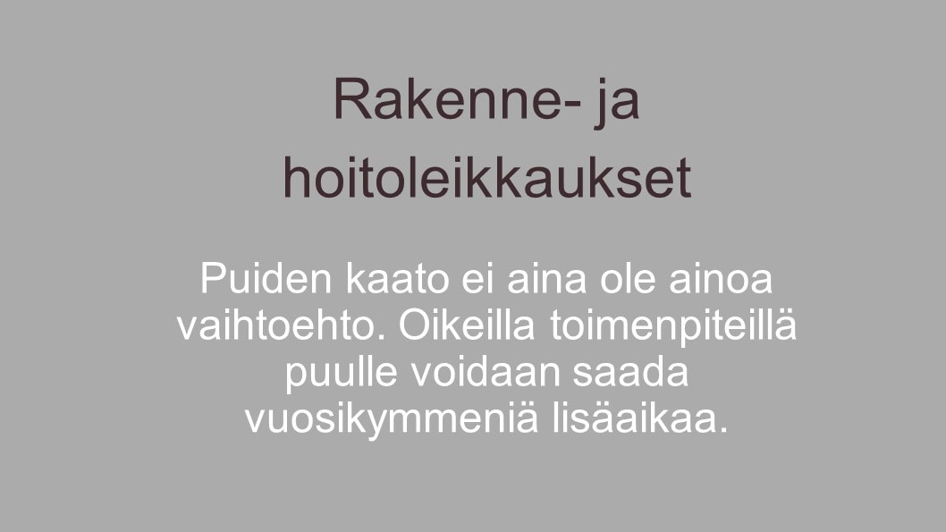 · Kaikkien puulajien rakenne- ja hoitoleikkaukset